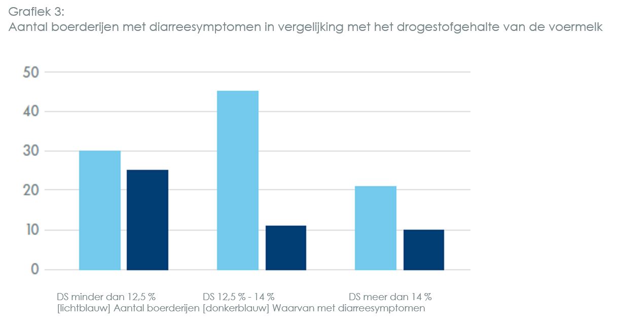 Op vlak van droge stof was de verdeling diarreesymptomen als volgt (zie ook grafiek 3):