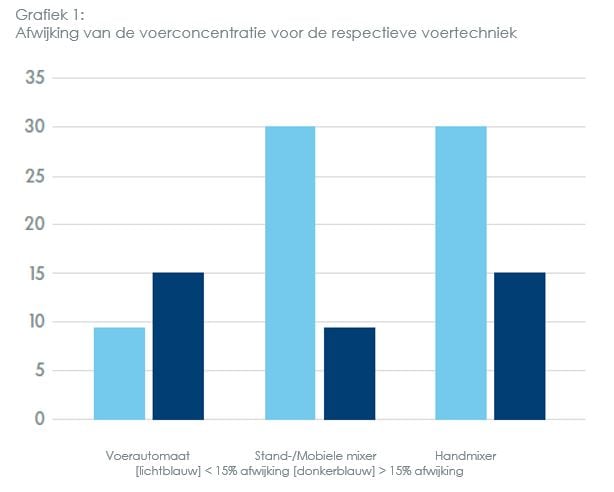 Van de 51 boerderijen die per volume doseerden, weken 24 boerderijen meer dan 15% af van de gewenste concentratie.