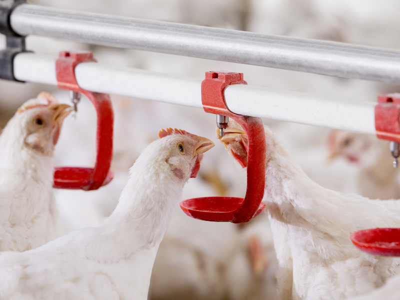 Birds struggle to regulate their body temperature in high heat, especially when humidity levels rise. Since they cannot sweat, they start panting. This leads to dehydration, electrolyte imbalances, and a rise in blood pH. Even small disruptions can significantly impact their growth, productivity, and survival rates. Additionally, heat stress increases cortisol levels and disrupts the oxidative system, further compromising their well-being.