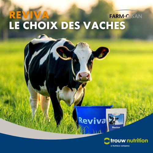 Postez une vidéo de votre vache appréciant Reviva sur vos réseaux sociaux, taguez @Trouw Nutrition Benelux et utilisez le hashtag #koeienkiezenreviva. Vous recevrez alors un seau de 7 kg de Farm-O-San Reviva GRATUIT !