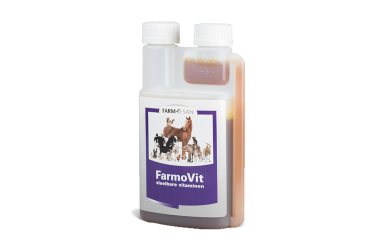 Farm-O-San FarmoVit is een aanvullend diervoeder voor zowel rundvee, pluimvee, varkens, paarden als knaagdieren. Het is speciaal samengesteld om deze dieren van extra vitamines te voorzien. Farm-O-San FarmoVit is rijk aan vitamines A, D, E en het complete vitame B complex.