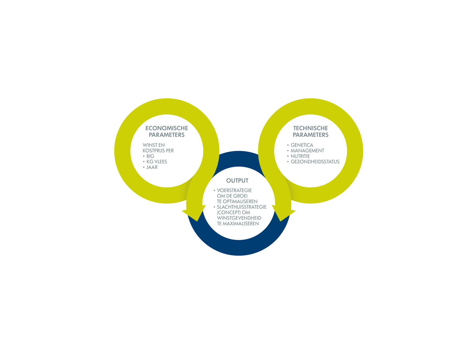 Naast deze input, is het ook belangrijk om de andere data zoals voederstrategie, marktprijzen, livestock models, genetica en- stalgegevens correct te bepalen in het model.