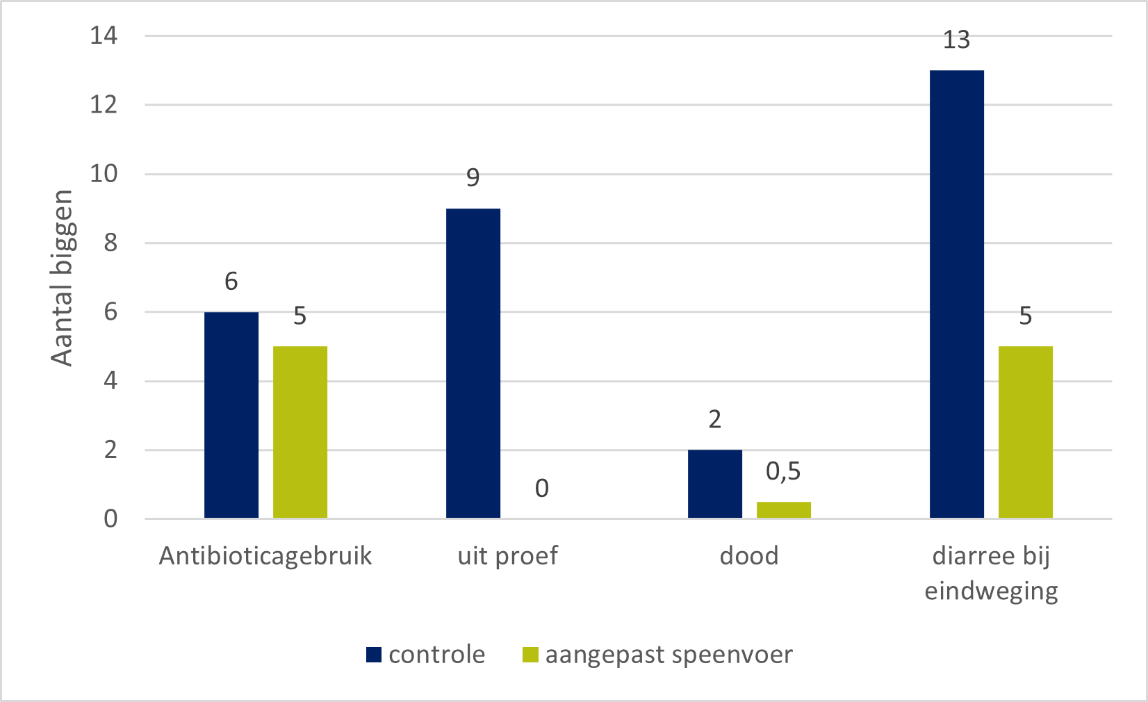 Figuur 4: impact op algemene gezondheid van de biggen (data: Trouw Nutrition Benelux).