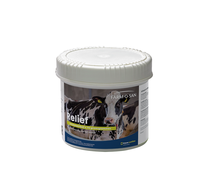 - Farm-O-San Relief: Een pijnstillende bolus op basis van plantaardig salicine, antioxidanten, vitamine E en zink.