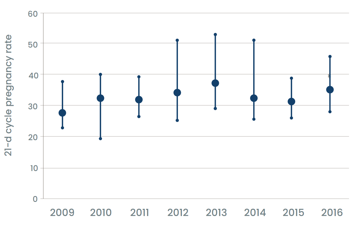 Wat onderscheidt de best presterende gezonde melkveekuddes van de rest? Vruchtbaarheidscijfers geven een cruciale aanwijzing. Gegevens als de drachtigheidspercentage in een cyclus van 21 dagen en inseminatiepercentages tonen aan dat de beste melkveebedrijven consequent hoge conceptiecijfers behalen (zie figuur 1). Het wordt duidelijk dat deze bedrijven prioriteit geven aan een juiste synchronisatie van oestrus-detectietechnieken, afhankelijk van de specifieke omstandigheden. Bovendien benadrukken ze de inzet van medewerkers en hun toewijding aan de hoogste normen voor koeienverzorging. Deze factoren dragen gezamenlijk bij aan langere, productievere en gezondere koeien, wat de duurzaamheid en winstgevendheid van de industrie ondersteunt.
