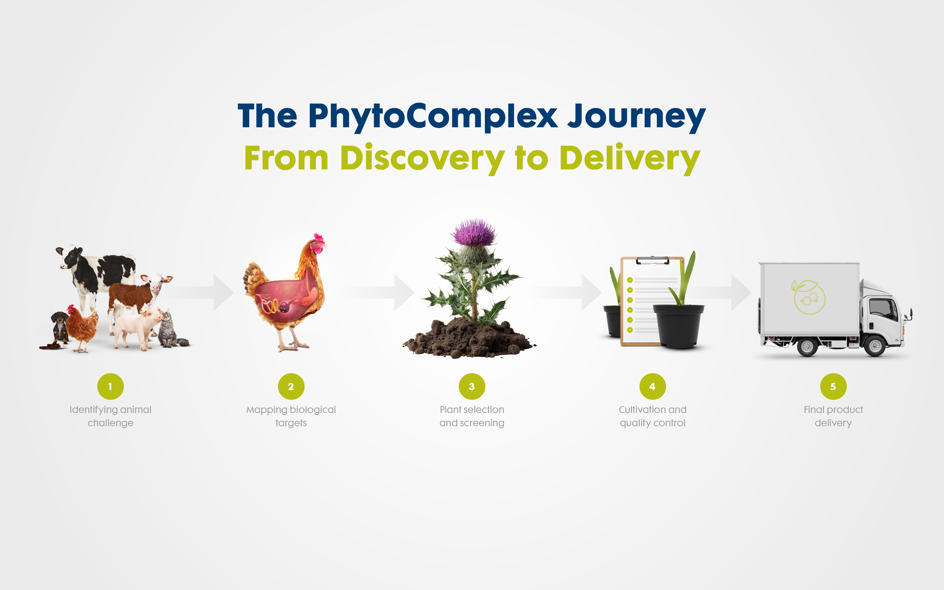 Binnen de Garden of the Future werkt Nutreco met PhytoComplexes: zorgvuldig geselecteerde constellaties van natuurlijke plantmetabolieten afkomstig uit de volledige plant. Deze benadering wijkt bewust af van de klassieke focus op geïsoleerde stoffen of synthetische analogen.
