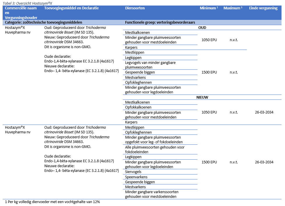 - Het toevoegingsmiddel is nu toegestaan voor meer diersoorten/-categorieën.