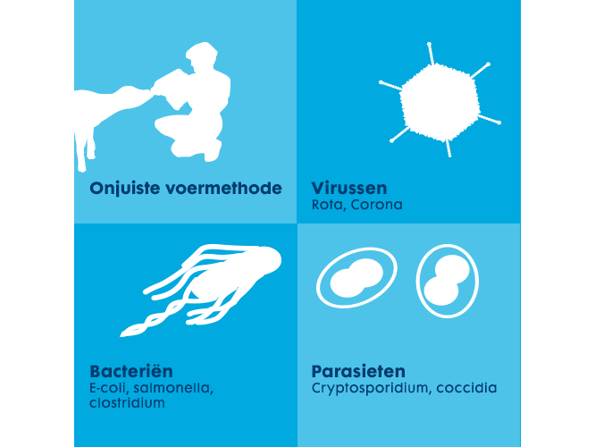 Vleeskalveren zijn vaak afkomstig van verschillende bedrijven, waardoor ze allemaal verschillende darmorganismen bij zich dragen. Het transport en het samenkomen met andere kalveren leidt tot stress en dit tast de immuniteit aan, welke vervolgens kan leiden tot kalverdiarree.