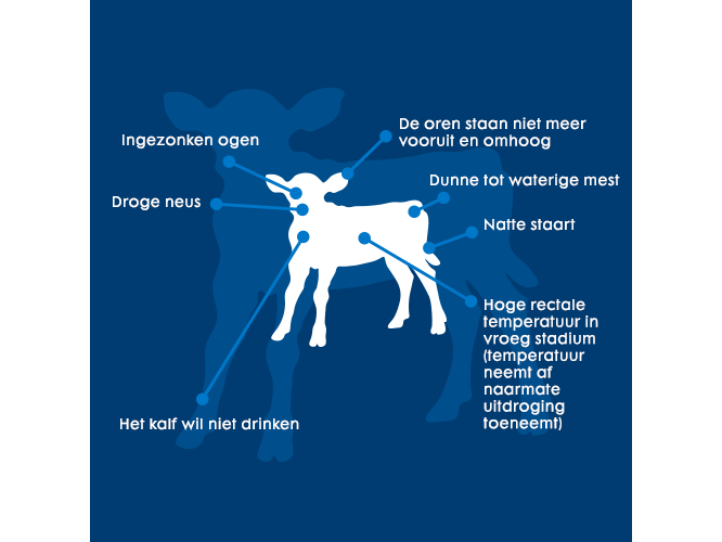 Uitdroging kan al gauw dodelijk zijn, daarom is het belangrijk dat kalverdiarree en de verschijnselen van uitdroging zo snel mogelijk worden herkend. Zodra de eerste tekenen van kalverdiarree zich openbaren, moet er onmiddellijk een elektrolytenoplossing toegedient worden om een snel herstel te bevorderen en het verlies van kalveren door diarree te voorkomen.